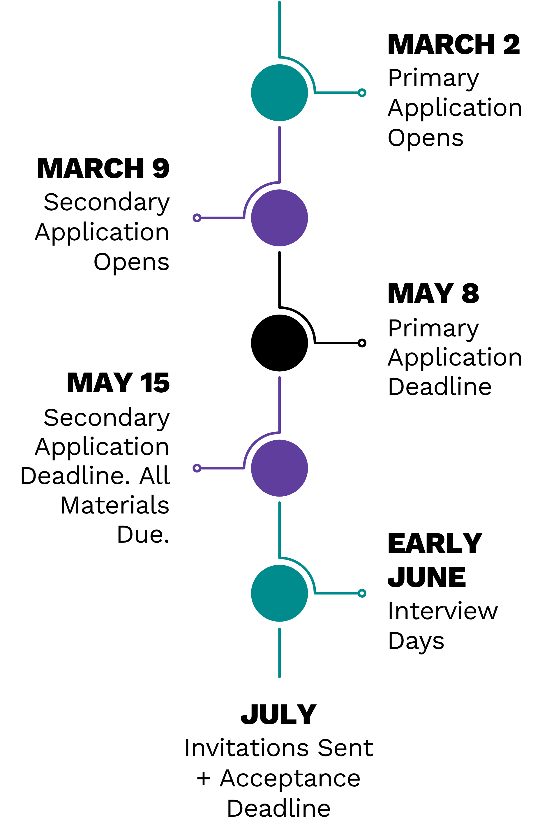 Primary application. All applicants complete and submit an online primary application. The primary application opens on March 2nd and closes at 11:59pm on May 8th, 2025.